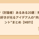この記事では、ENTPの特徴から生まれる“あるある行動”を20個まとめつつ、