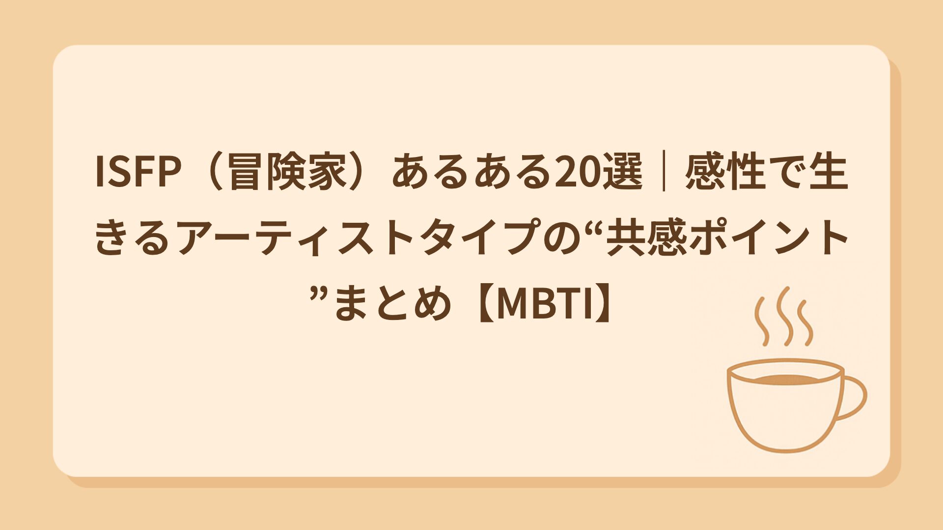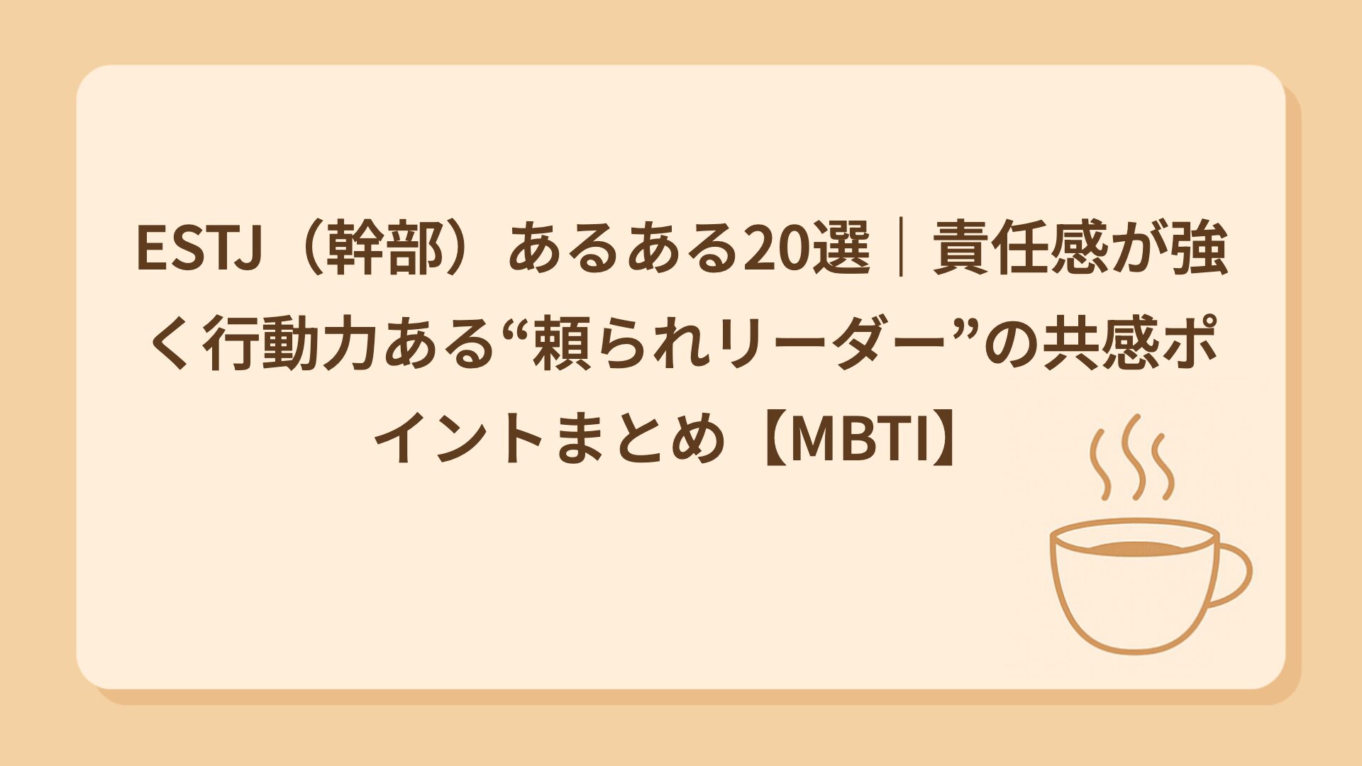 TAG あるある ISTP(職人)あるある20選|放っておいてほしいけど有能な人 2025.12.19 MBTIネタ tmk03 ゆるっと性格カフェ ISTJ(管理者)あるある20選|決めたルールは絶対守る堅実派 2025.12.19 MBTIネタ tmk03 ゆるっと性格カフェ ISFP(冒険家)あるある20選|感覚で動くマイペースな芸術家肌 2025.12.19 MBTIネタ tmk03 ゆるっと性格カフェ ISFJ(擁護者)あるある20選|気づいたら全部引き受けてる人 2025.12.19 MBTIネタ tmk03 ゆるっと性格カフェ INTP(論理学者)あるある20選|考えてるだけで一日終わる人 2025.12.15 MBTIネタ tmk03 ゆるっと性格カフェ INTJ(建築家)あるある20選|先を読みすぎる静かな戦略家タイプ 2025.12.15 MBTIネタ tmk03 ゆるっと性格カフェ INFP(仲介者)あるある20選|優しすぎて自分を後回しにしがちな人 2025.12.15 MBTIネタ tmk03 ゆるっと性格カフェ INFJ(提唱者)あるある20選|考えすぎて一人になりたくなる人 2025.12.15 MBTIネタ tmk03 ゆるっと性格カフェ ESTP(起業家)あるある20選|ノリと勢いで突っ走る行動派タイプ 2025.12.15 MBTIネタ tmk03 ゆるっと性格カフェ ESTJ(幹部)あるある20選|正論でまとめがち?頼られリーダータイプ 2025.12.15 MBTIネタ tmk03 ゆるっと性格カフェ もっと見る