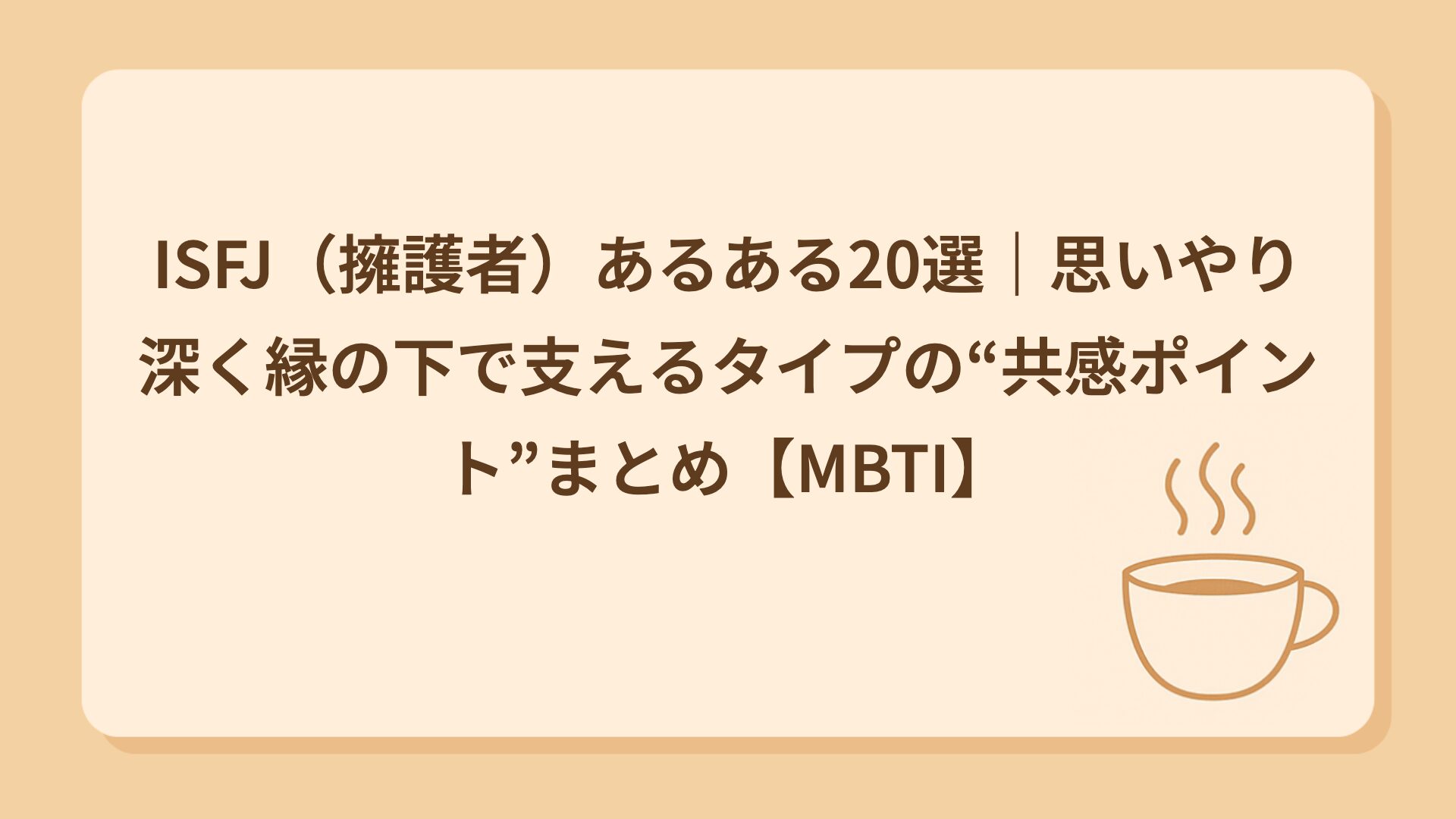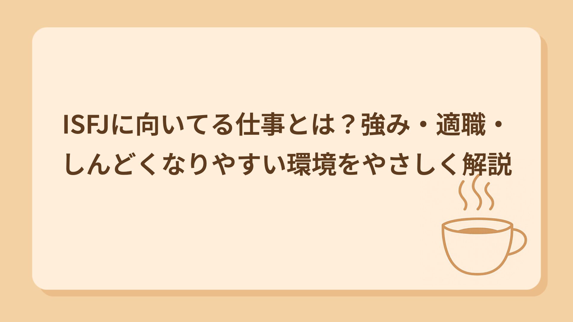 TAG ISFJ ISFJに向いてる仕事とは?強み・適職・しんどくなりやすい環境をやさしく解説【MBTI|人を支えることに喜びを感じる献身家タイプ】 2025.12.22 仕事 tmk03 ゆるっと性格カフェ ISFJ(擁護者)あるある20選|気づいたら全部引き受けてる人 2025.12.19 MBTIネタ tmk03 ゆるっと性格カフェ ISFJ(擁護者型)とは?|やさしく支える縁の下の力持ち。誠実であたたかい保護者タイプをゆるっと解説 2025.12.08 16タイプ一覧 tmk03 ゆるっと性格カフェ