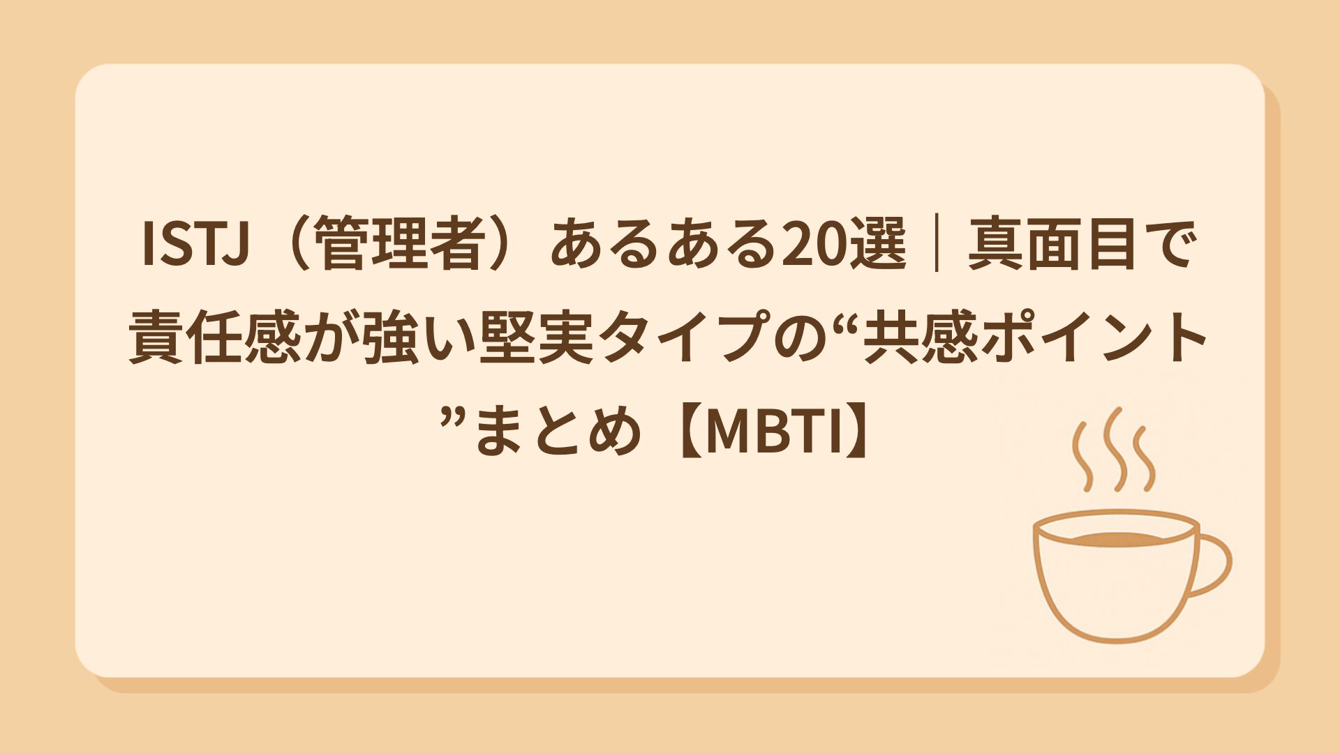 TAG ISTJ ISTJに向いてる仕事とは?強み・適職・しんどくなりやすい環境をやさしく解説【MBTI|責任感で物事を支える管理者タイプ】 2025.12.22 仕事 tmk03 ゆるっと性格カフェ ISTJ(管理者)あるある20選|決めたルールは絶対守る堅実派 2025.12.19 MBTIネタ tmk03 ゆるっと性格カフェ ISTJ(管理者型)とは?|真面目で堅実な現実派。着実に物事を進める誠実タイプをゆるっと解説 2025.12.08 16タイプ一覧 tmk03 ゆるっと性格カフェ